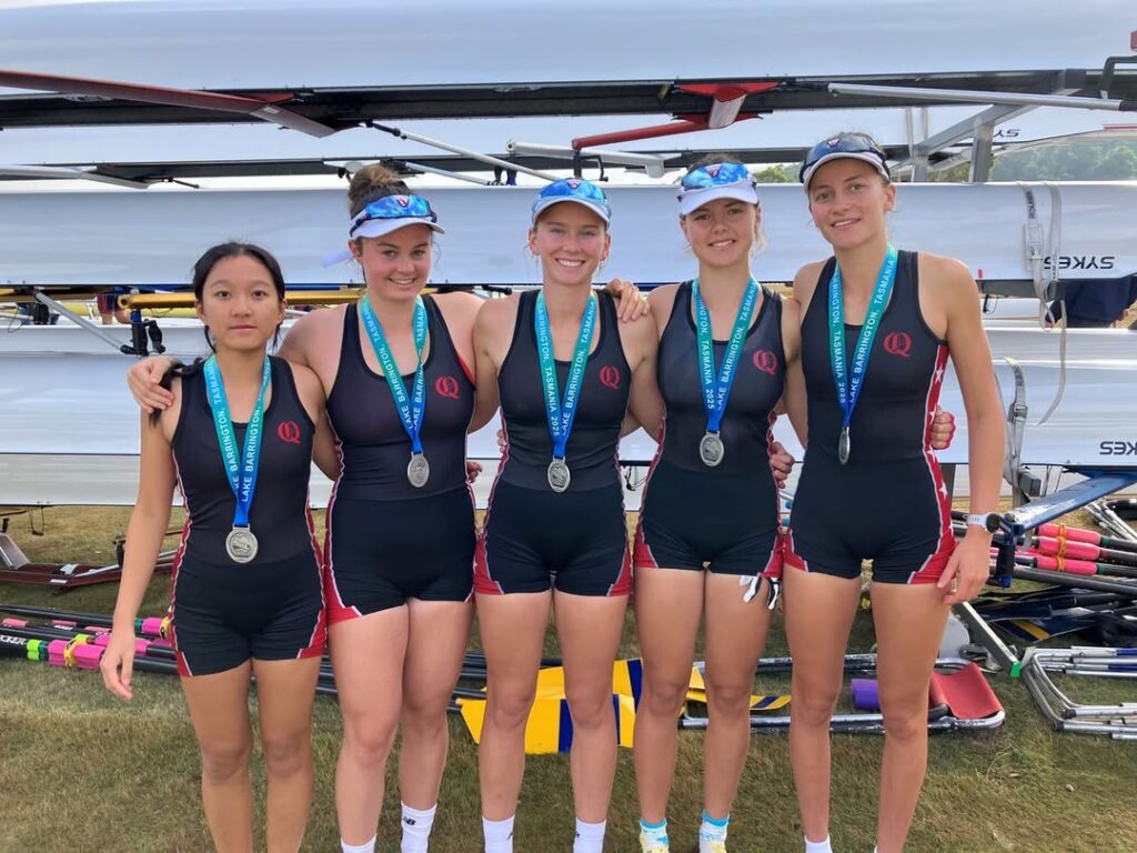 Above: Queenwood’s U19 4+ Crew, Silver Medalists at the Australian Rowing Championships. Tasmania, March 2025.